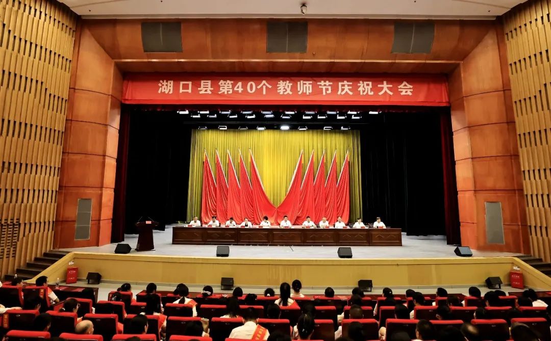 四十年春风化雨,四十年桃李芬芳。9月10日,湖口县第40个教师节庆祝大会在县艺术中心举行。会议的主要任务是深入贯彻党的二十大和二十届二中、三中全会精神,认真落实习近平总书记关于教育的重要论述,总结回顾一年来教育改革发展情况,安排部署当前和今后一段时期的教育工作,通报表扬全县教育战线上涌现出来的先进典型,激励广大教师和教育工作者以“学为人师、行为世范”为准则,涵养高尚师德、精研教学艺术、潜心立德树人,奋力开创全县教育事业高质量发展新局面。