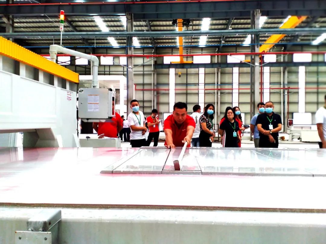 活动中,与会经销商还到湖口东鹏新材料有限公司,近距离感受东鹏生态石生产的工艺流程,了解产品种类和质量。湖口东鹏新材料有限公司秉承“绿色生产和先进制造”理念,采用工业4.0技术,实现工厂自动化生产与信息化、智能化、远程可视化管理。目前,已建成生态石生产线两条,开发生态石品种24个,生产的生态石产品具有抗刮花、抗压、抗弯折、耐污染、耐冻融、耐紫外线等环保特点,可广泛应用于楼梯、内墙、家具、地面、隔断等。项目全部达产达标后,将建成生态石生产线13条,年产能达1500万平方米生态石产品。