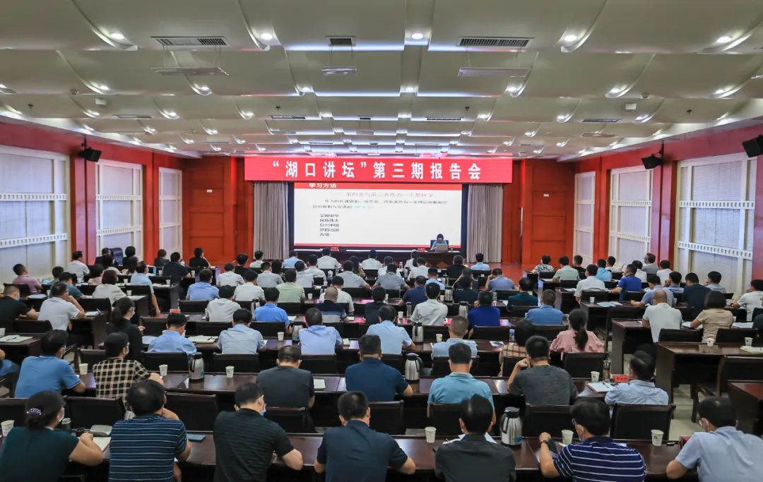 9月16日,“湖口讲坛”第三期报告会暨全县营商环境专题大讲堂举行。活动邀请中共江西省委党校党史党建部教授杨泽娟作《习近平谈治国理政》第四卷专题辅导学习报告,南昌师范学院副教授、江西营商环境研究中心主任章敏作《湖口县营商环境现状及优化方向》专题报告。县委书记曾宝柱,县委副书记刘奇,县政协主席梅媚等县四套班子在家领导,县法检“两长”,县委各部门、县直及驻县各单位党政主要负责同志,各乡(镇)党政主要负责同志在主会场聆听了报告。