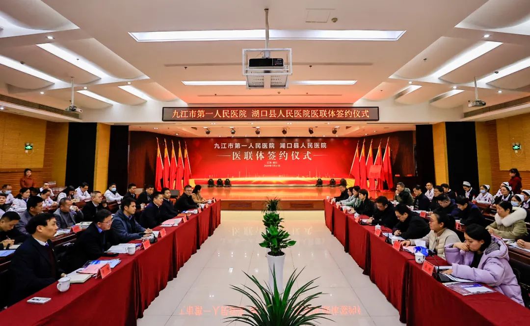 1月31日,九江市第一人民医院和湖口县人民医院医联体签约仪式举行。九江市第一人民医院党委书记何剑锋出席并讲话。县委书记曾宝柱出席并致辞。县委副书记、县长陈洋主持仪式。市第一人民医院副院长唐尤佳、王惠玲、曹玲玲等出席仪式。