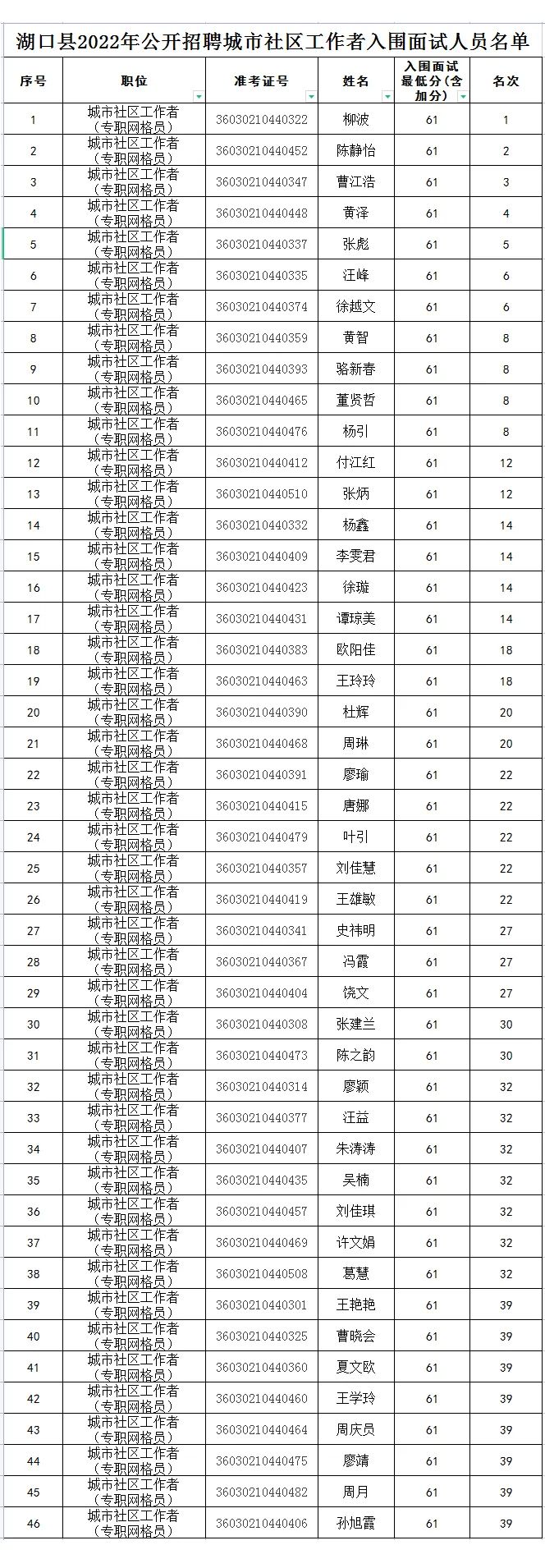附件:《湖口县2022年公开招聘城市社区工作者入围面试人员名单》