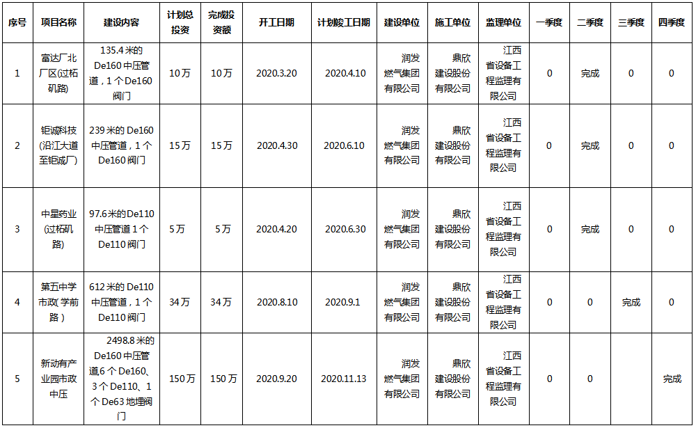 2020年度湖口县润发燃气项目进展信息(四季度)