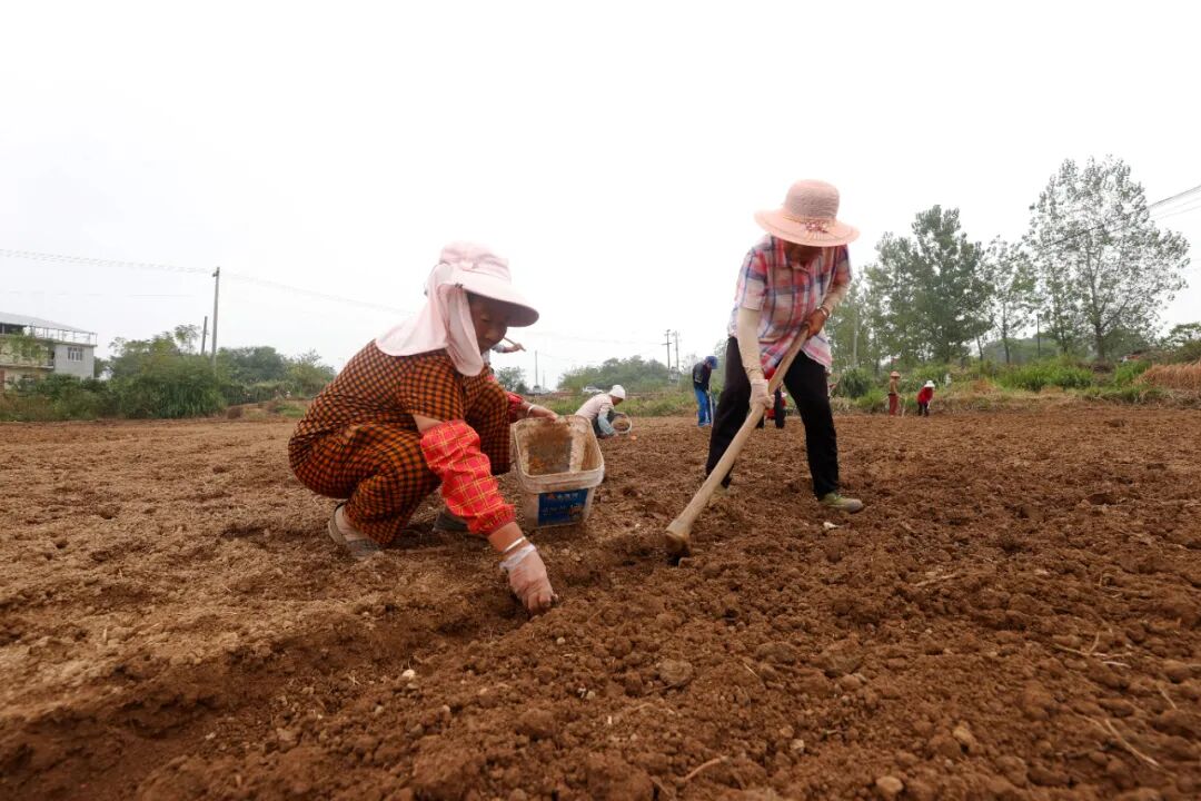 近日,在大垅乡花尖村,几十名村民正在田间劳作。他们俯身弯腰,动作娴熟地将一个个藠头栽种进松软的土地里。大家分工协作,有的开沟,有的播种,有的覆土。
