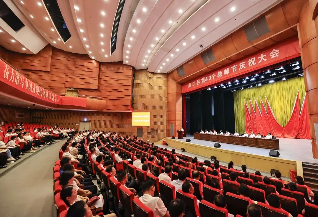 四十年春风化雨,四十年桃李芬芳。9月10日,湖口县第40个教师节庆祝大会在县艺术中心举行。会议的主要任务是深入贯彻党的二十大和二十届二中、三中全会精神,认真落实习近平总书记关于教育的重要论述,总结回顾一年来教育改革发展情况,安排部署当前和今后一段时期的教育工作,通报表扬全县教育战线上涌现出来的先进典型,激励广大教师和教育工作者以“学为人师、行为世范”为准则,涵养高尚师德、精研教学艺术、潜心立德树人,奋力开创全县教育事业高质量发展新局面。