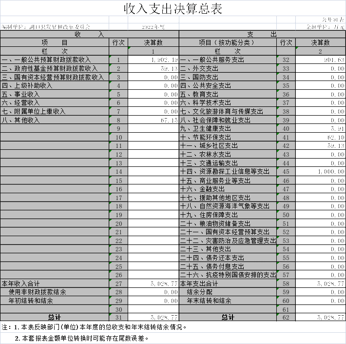 一、收入支出决算总表