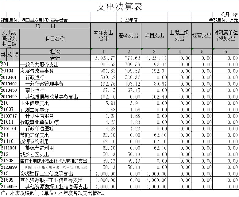 - 支出决算表