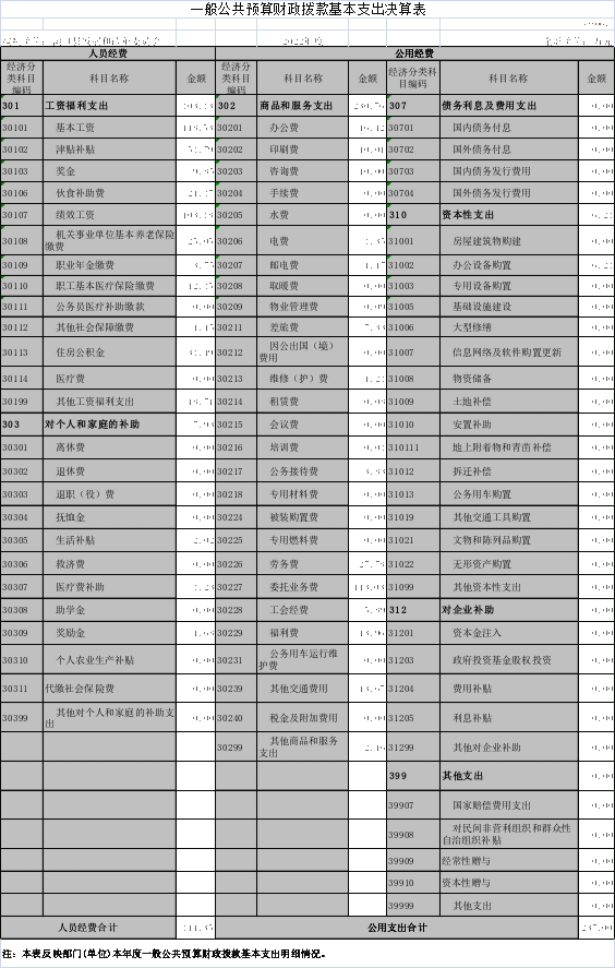 - 一般公共预算财政拨款基本支出决算表