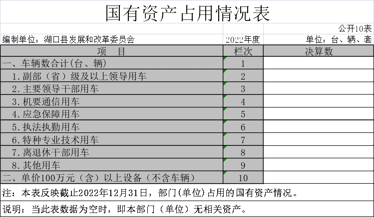 - 国有资产占用情况表