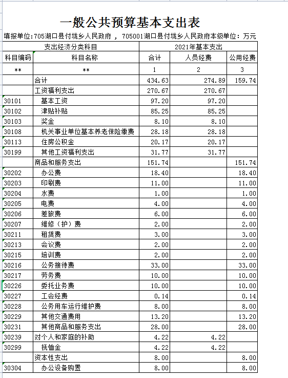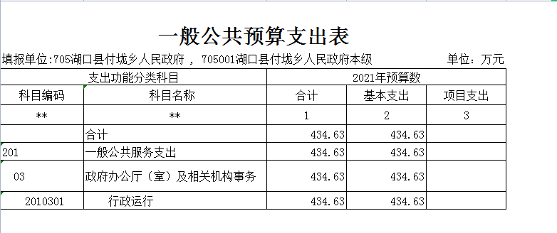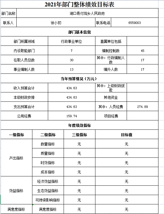 第三部分 湖口县付垅乡人民政府2021年部门预算表