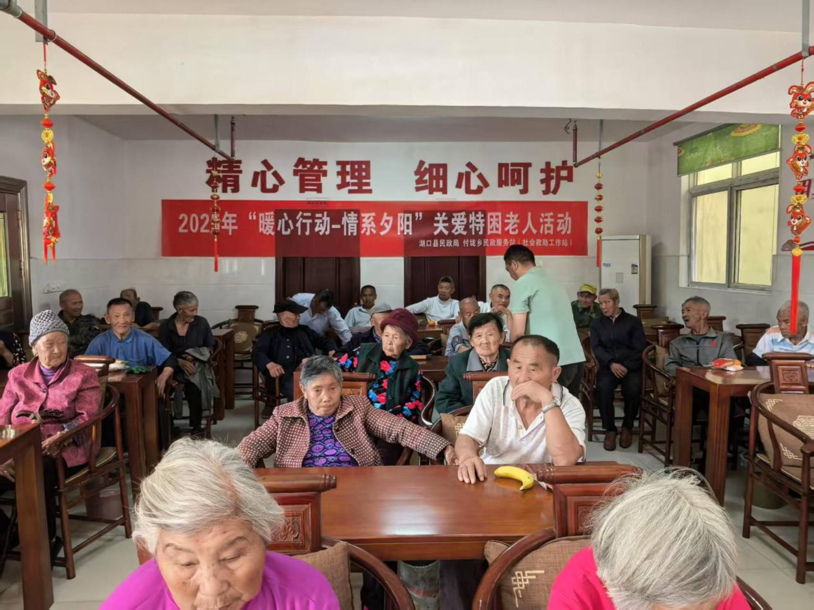 为让尊老敬老爱老的温暖薪火相传,切实提升特困老人的幸福感,近日湖口县民政局联合付垅乡民政服务站在付垅乡敬老院组织开展“暖心行动 情系夕阳”关爱特困老人活动,为老人们送去温暖和关怀。