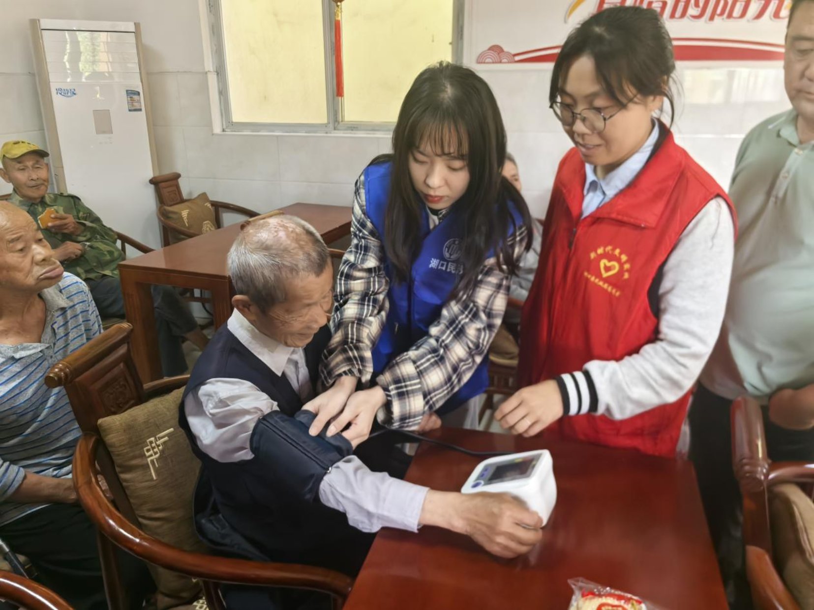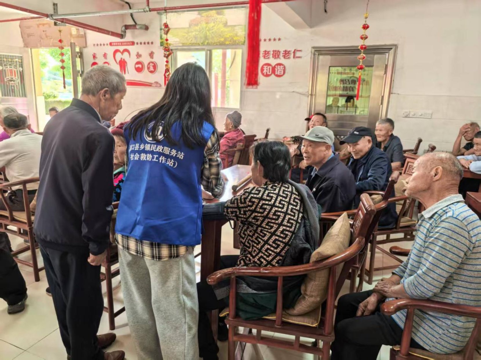 活动现场,付垅乡民政服务站工作人员和社工志愿者们详细了解老人们的生活状况和身体情况,认真倾听老人的心声。同时,社工和志愿者们还为老人测量血压,叮嘱他们注意清淡饮食和规律作息,现场洋溢着温馨祥和的气氛。活动最后,工作人员为每位老人送上精心准备的慰问小礼品。“感谢党和政府的好政策,在这里吃得好、住得好,今天还有这么多人来看望我们,心里特别开心。”77岁的特困老人程大爷感动地说。