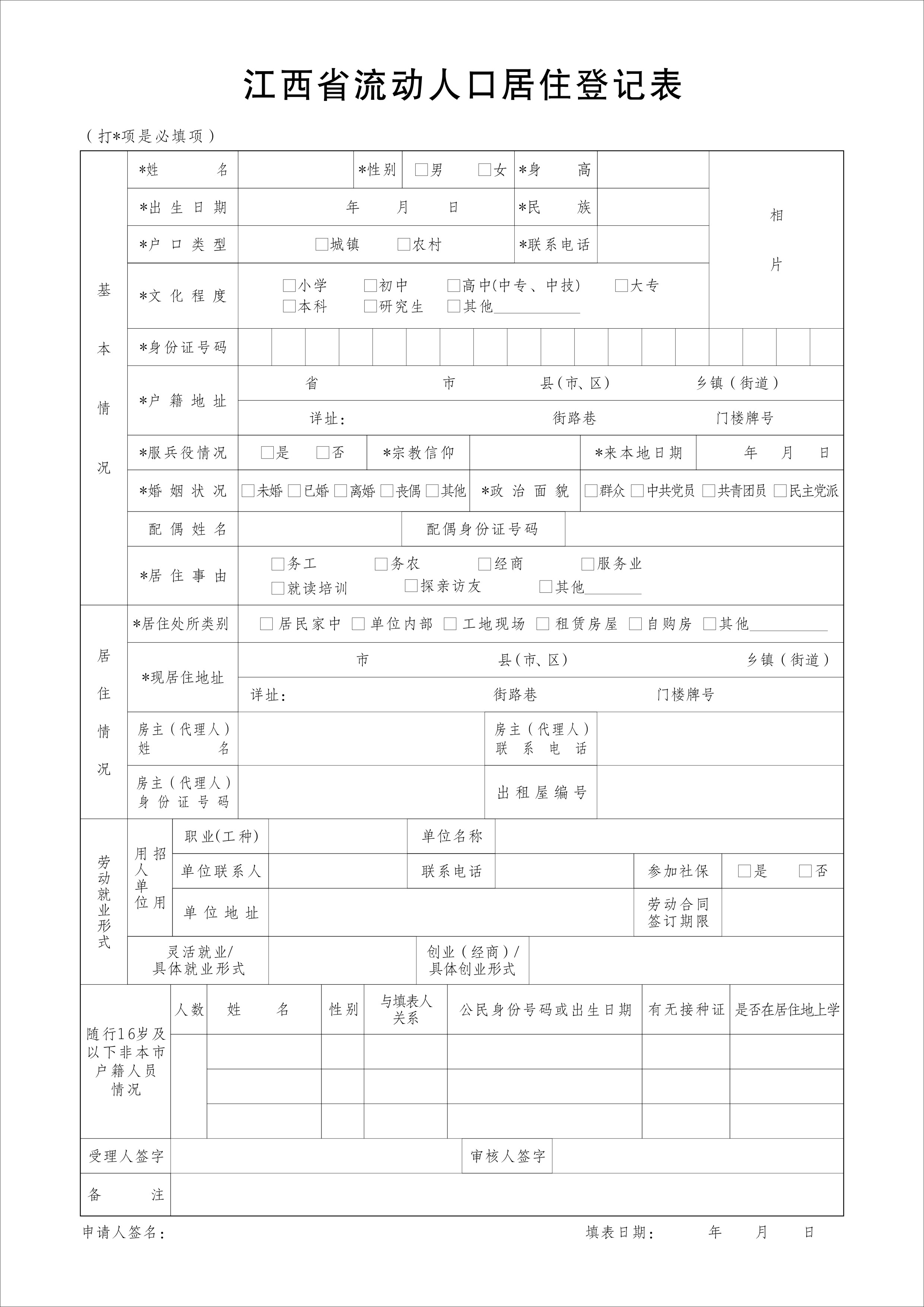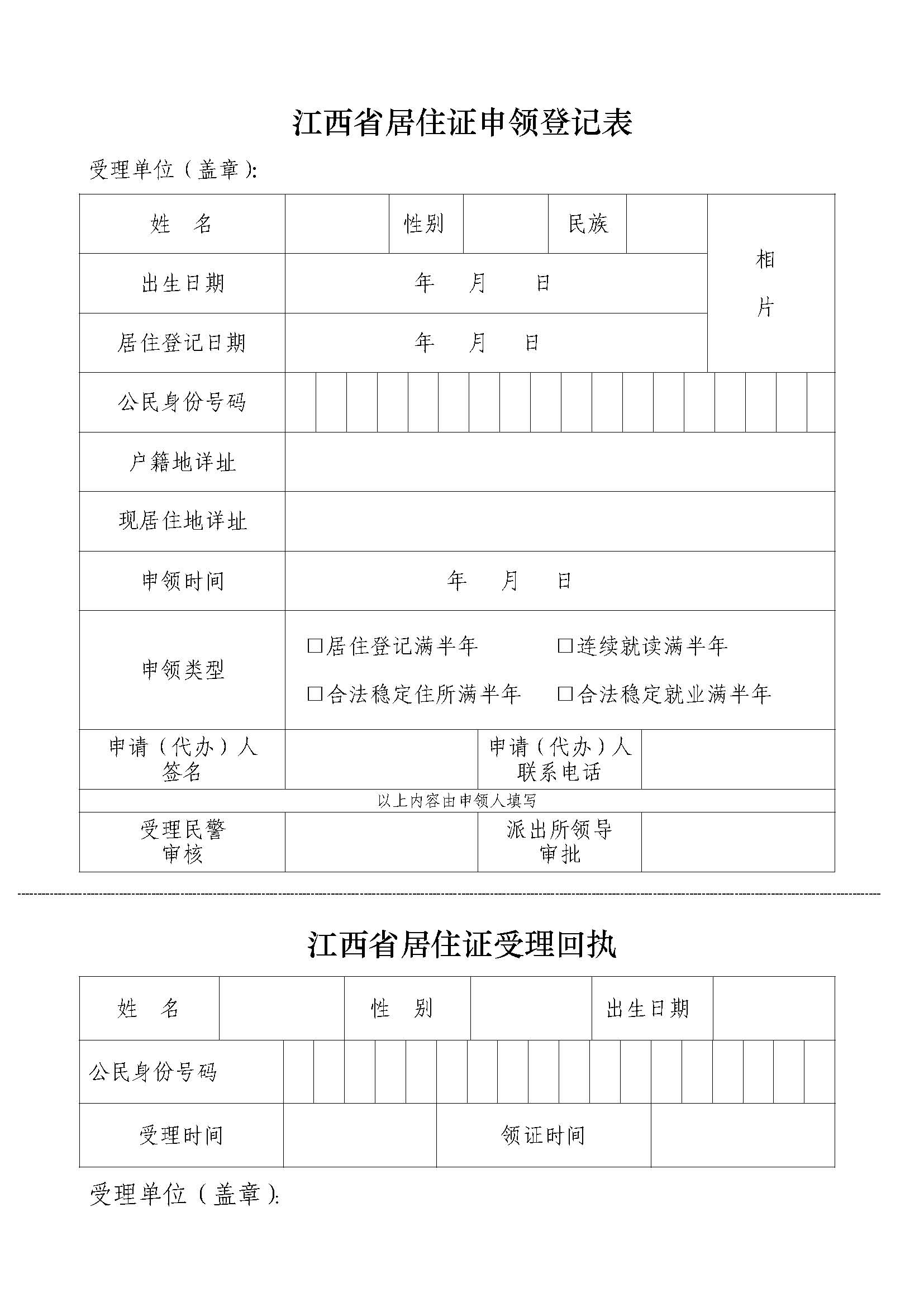 江西省居住登记存根