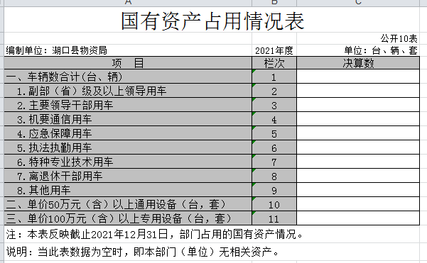 截止2021年12月31日,本部门(单位)国有资产占用情况见公开10表《国有资产占用情况表》。其中车辆中的其他用车主要是:无公务车辆。