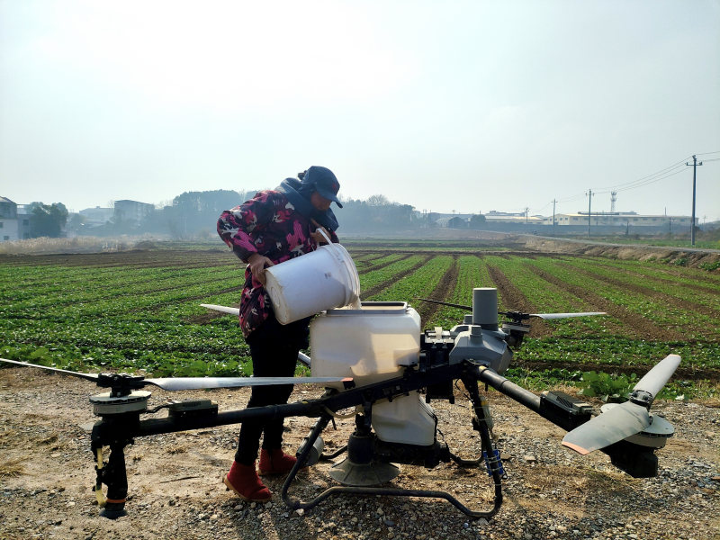 在均桥镇均桥村的连片油菜田里,种粮大户蔡初成正娴熟地操控无人机开展施肥作业。“得选无风的天气,把肥料按比例兑好,我在地面遥控操作,一个小时就能把一百多亩地的肥料均匀喷撒到位。”蔡初成一边紧盯无人机飞行轨迹,一边向身旁人介绍。作为深耕农田十余载的“老农人”,他的种粮之路正是均桥镇农业机械化发展的生动缩影。从最初夫妻二人起早摸黑、手工劳作,农忙时节连饭都顾不上吃的艰辛,到在政府政策扶持下主动购置农机、考取农机驾驶证,如今的蔡初成已配齐拖拉机、耕田机、播种机、无人机等全套农机设备。这些得心应手的“铁疙瘩”,化身农业生产的“三头六臂”,让他彻底告别“面朝黄土背朝天”的传统耕作模式,在田间地头劳作得游刃有余。凭借在农业生产中的突出贡献,2016年,蔡初成光荣当选九江市劳动模范。这份沉甸甸的荣誉,既是对他个人奋斗的肯定,更是对广大奋战在农业一线劳动者的鼓舞与鞭策。