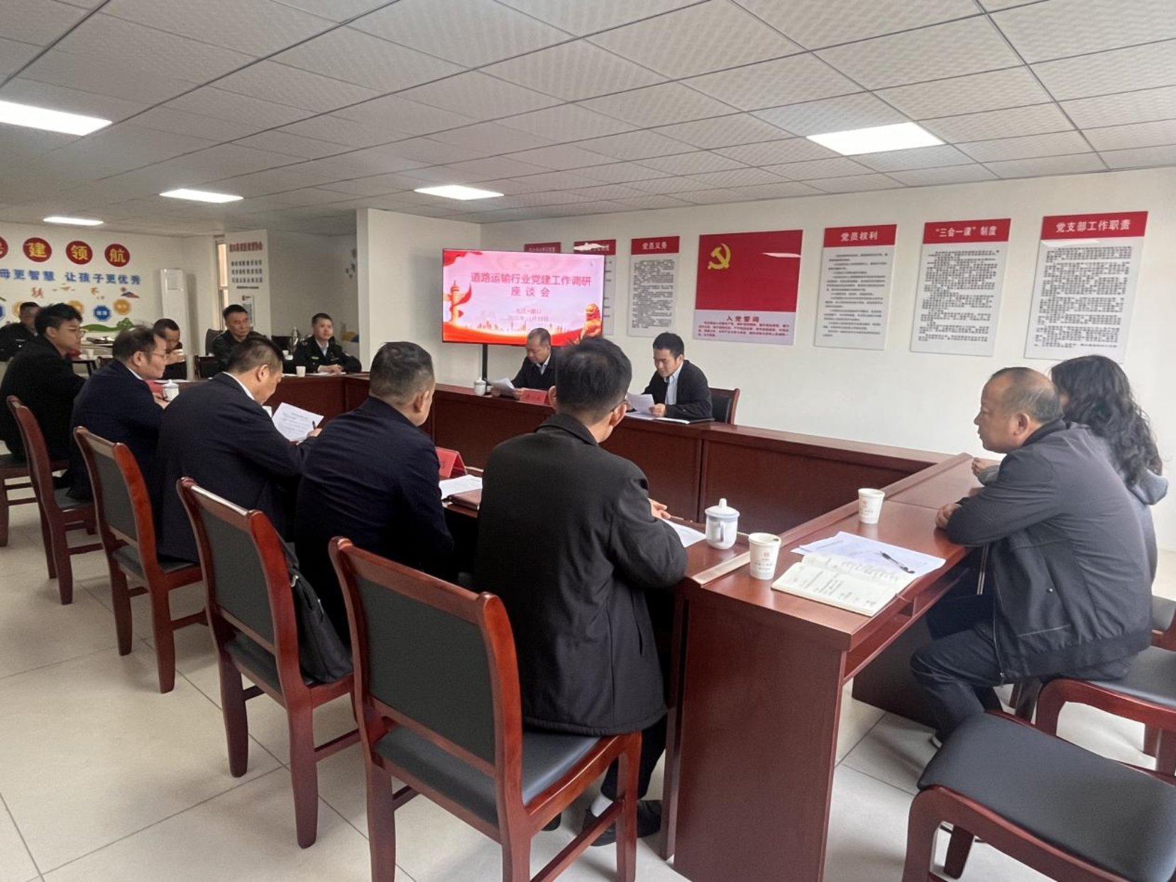 座谈会上,调研组与党员货车司机代表开展深入交流,对我县货车司机之家建设及行业党建工作成效给予充分肯定。