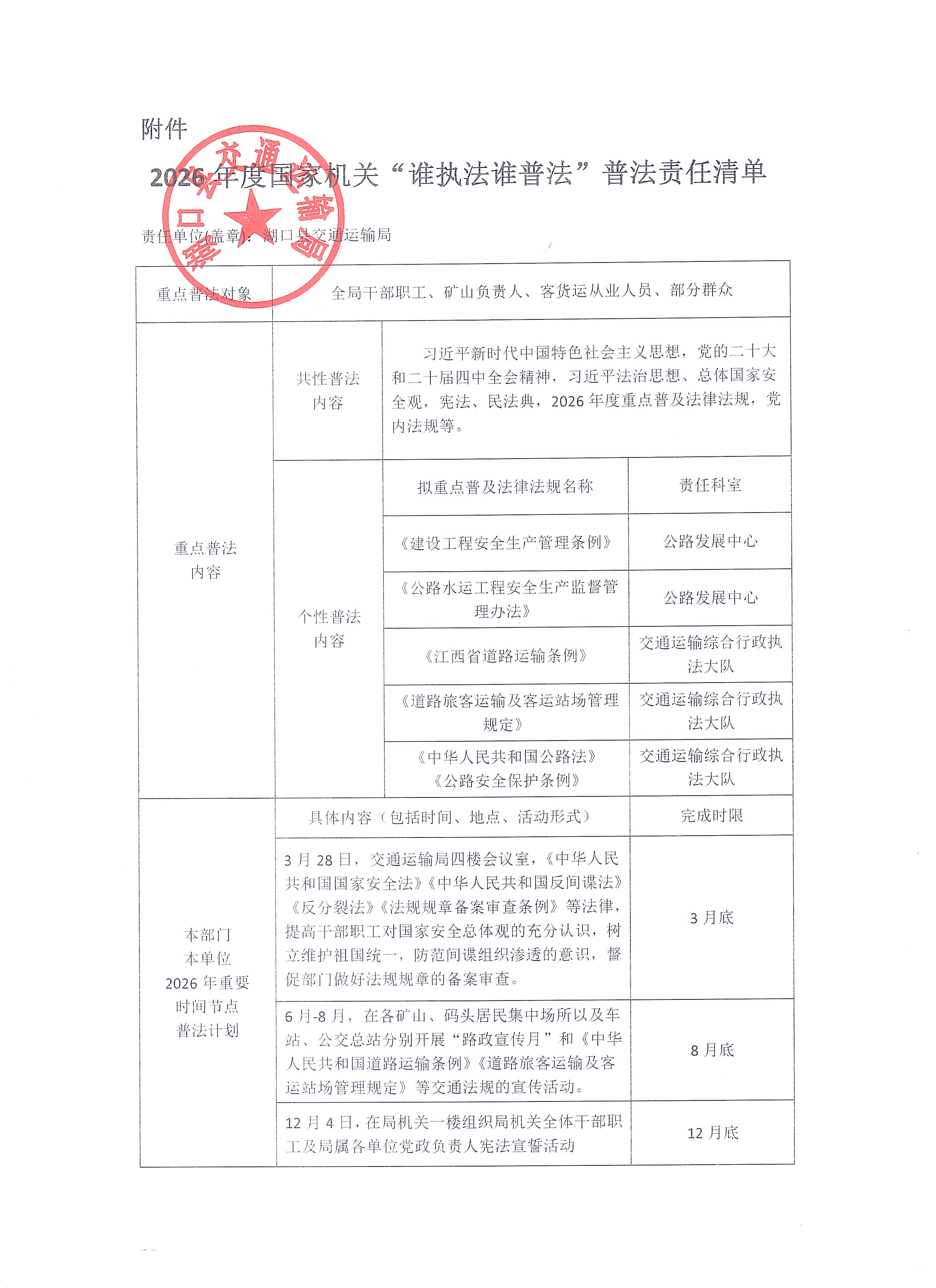 2026年度交通运输局“谁执法谁普法”普法责任清单