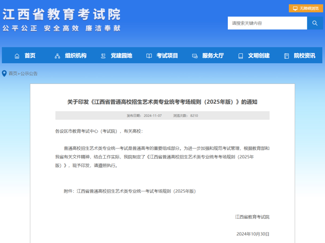 关于印发《江西省普通高校招生艺术类专业统考考场规则(2025年版)》的通知