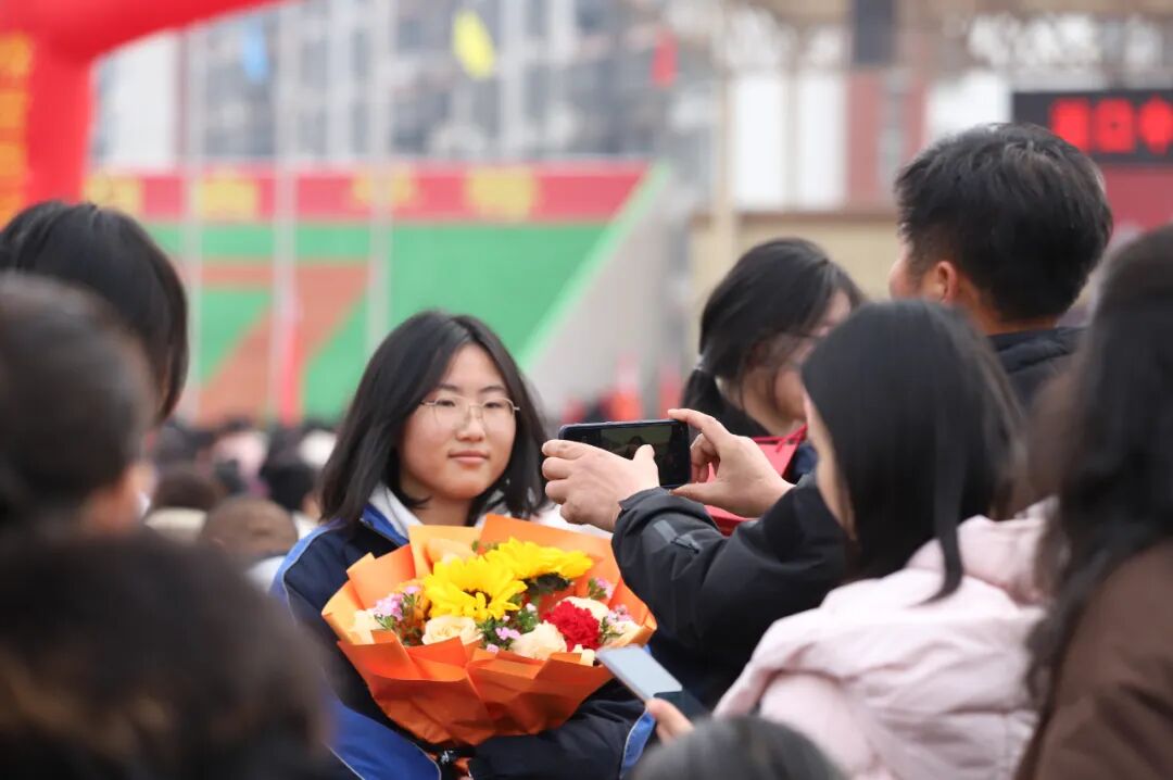 在温情与激昂交织的氛围中,学子们列队依次穿过“感恩门”和“成人门”。两侧教师以击掌传递力量,声声“加油”与学生的坚定目光交汇,绘就了一幅青春奋进的画卷。家长在场外凝望,眼中满溢骄傲与期待。