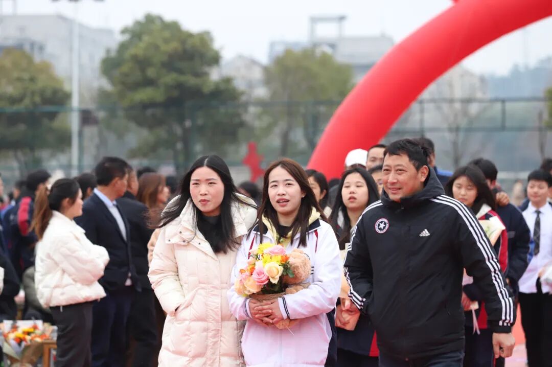 在成人礼仪式环节,学生们依次向老师行鞠躬礼,并向父母献上亲笔书信。许多家长热泪盈眶,与孩子深情相拥,温情瞬间令人动容。学生家长冯波表示:“作为高三学生家长,每天看着孩子们起早贪黑确实心疼。距离高考还有九十多天,希望孩子们保持良好心态,走稳脚下每一步,高考加油。”