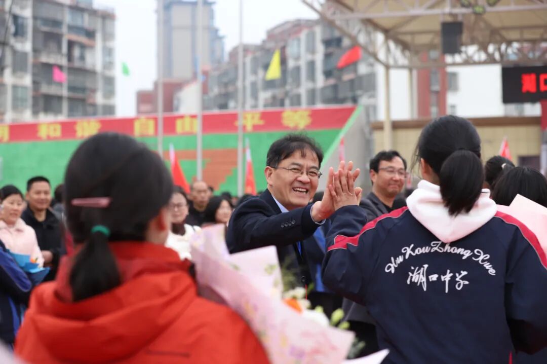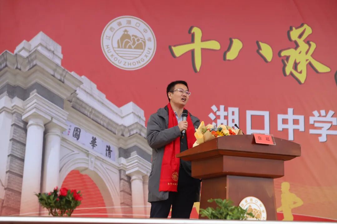 上午7时58分,活动在庄严的升国旗仪式中拉开序幕。全体师生肃立高唱国歌,激昂的旋律激荡着青春豪情。随后,湖口中学党委书记周国勇向师生介绍了特邀嘉宾——清华大学教授、湖口中学校友徐超,并寄语学生以杰出校友为榜样,勇担责任、成就卓越。