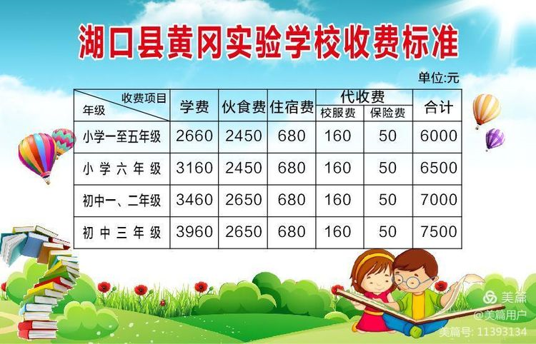 湖口县黄冈实验学校收费标准