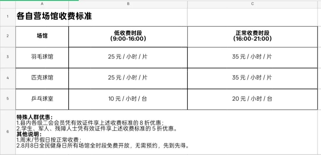 以下为部分场馆收费明细,供大家参考: