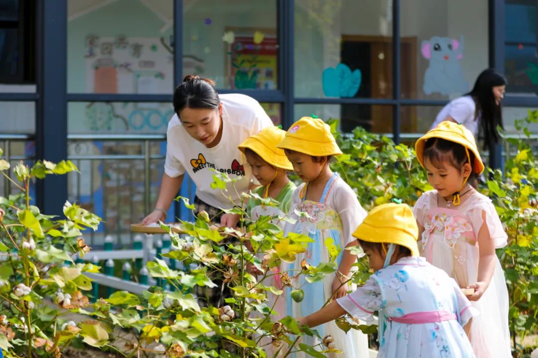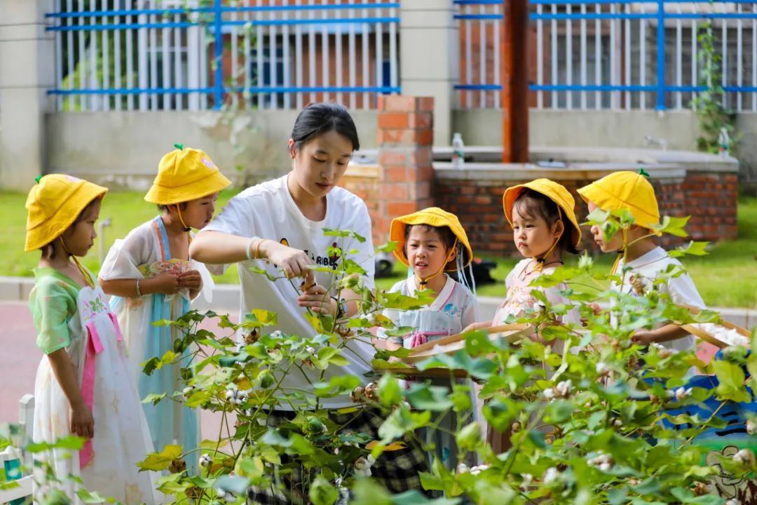 “我园遵循了自然教育的理念,让幼儿直观地认识棉花这种植物,了解其生长过程,从播种、发芽、长叶、开花到结出棉桃吐出棉花,孩子们可以观察到植物在不同阶段的形态变化,丰富对自然的认知。”湖口县第一幼儿园教师吴晴雯说,近年来,该园充分整合利用校园内空旷的边角地,组织小朋友一起种植西瓜、高粱、甘蔗等农作物,让小朋友体验农耕文化,感知丰收带来的乐趣。