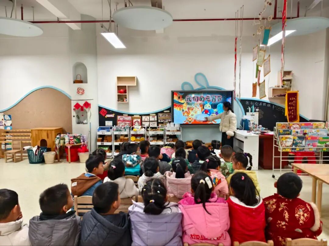 活动伊始,各班教师以生动有趣的动画、绘本和儿歌为载体,向孩子们讲述元宵节的由来与习俗。从“元宵花灯节”的历史典故,到“吃汤圆象征团圆美满”的生活智慧,再到“舞龙舞狮祈福纳祥”的民间传统,孩子们听得津津有味,争相举手分享自己知道的节日趣事。