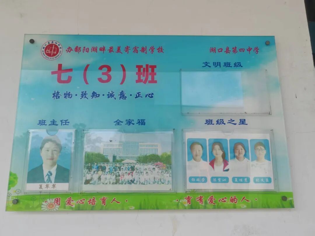 湖口四中以“爱心育人,家在四中”为核心理论,将“家”文化如墨染宣纸般晕染校园的每一处角落。教学区走廊的立柱化身时光长廊,“中国脊梁”人物画像与铿锵名言交相辉映,似跨越岁月长河的无声诉说,让传承的力量在学子心间生根发芽;教室门前的班级铭牌,则是温暖的情感驿站,班主任与学生的全家福笑意盈盈,定格着朝夕相伴的珍贵瞬间,将“家”的温馨与归属感悄然浸润每个青春心灵。