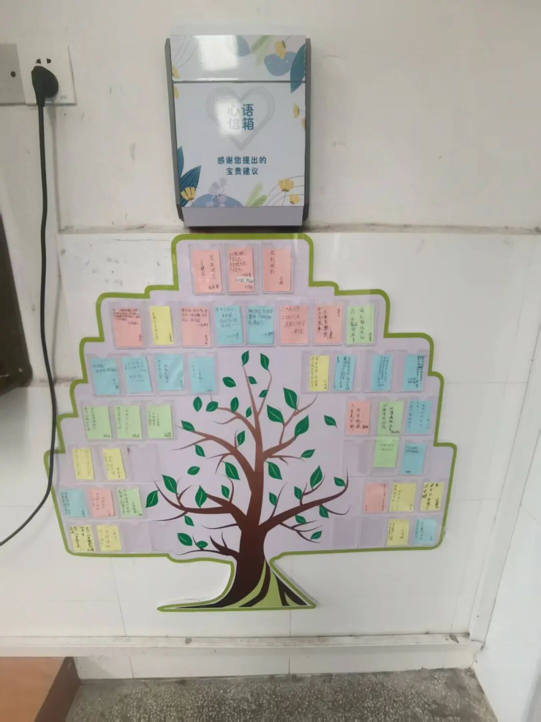 在校门口与格物楼一楼,校长信箱如静默的倾听者,收纳着家校协同的期待;开心驿站旁的“心声”信箱,则以匿名的温柔,迎接学生关于学习困惑、人际交往的万千心事。心理教师团队每周定时开箱,用书面回信在“回音壁”搭建秘密的心灵通道,让每个投递的瞬间都成为被尊重的开始。而在每个教室前门黑板两边,“照片墙家长寄语”和蓝白相间的“心语信箱”,架起跨越家校的情感桥梁、藏着同班同学最质朴的安慰。