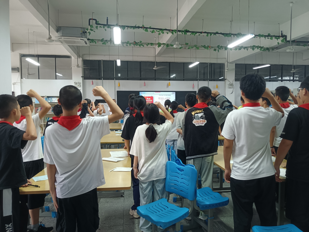 团课最后,全体少年团员高举右拳,庄严宣誓:“我志愿弘扬抗战精神,树立国防意识,增强国防观念,履行国防义务,从自身做起,从点滴做起,为共筑国防长城、守护家园安宁贡献青春力量!” 铿锵有力的誓言,是他们对国防责任的坚定承诺,更是青春报国的赤诚宣言。(王敏)