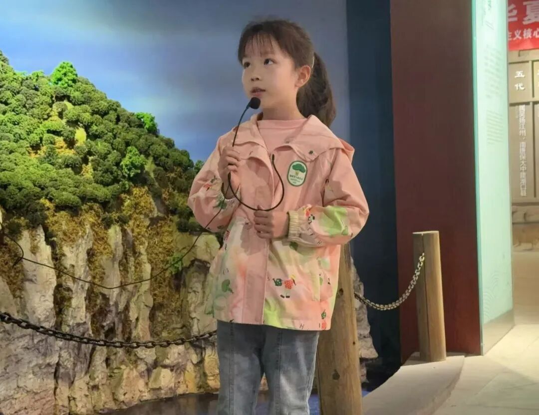 讲座结束后,队员们走进湖口县博物馆展厅,在讲解员的带领下,结合石钟山实景模型与文物、图文资料,进一步了解石钟山的地理风貌与历史故事。活动中,队员们化身“小小讲解员”,自信大方地分享自己眼中的石钟山,讲述对《石钟山记》的理解与感悟。孩子们充满童趣的解读,不仅展现了对本土文化的深刻理解,更在实践中锻炼了语言表达与讲解技巧,让文化传承在青少年心中生根发芽。