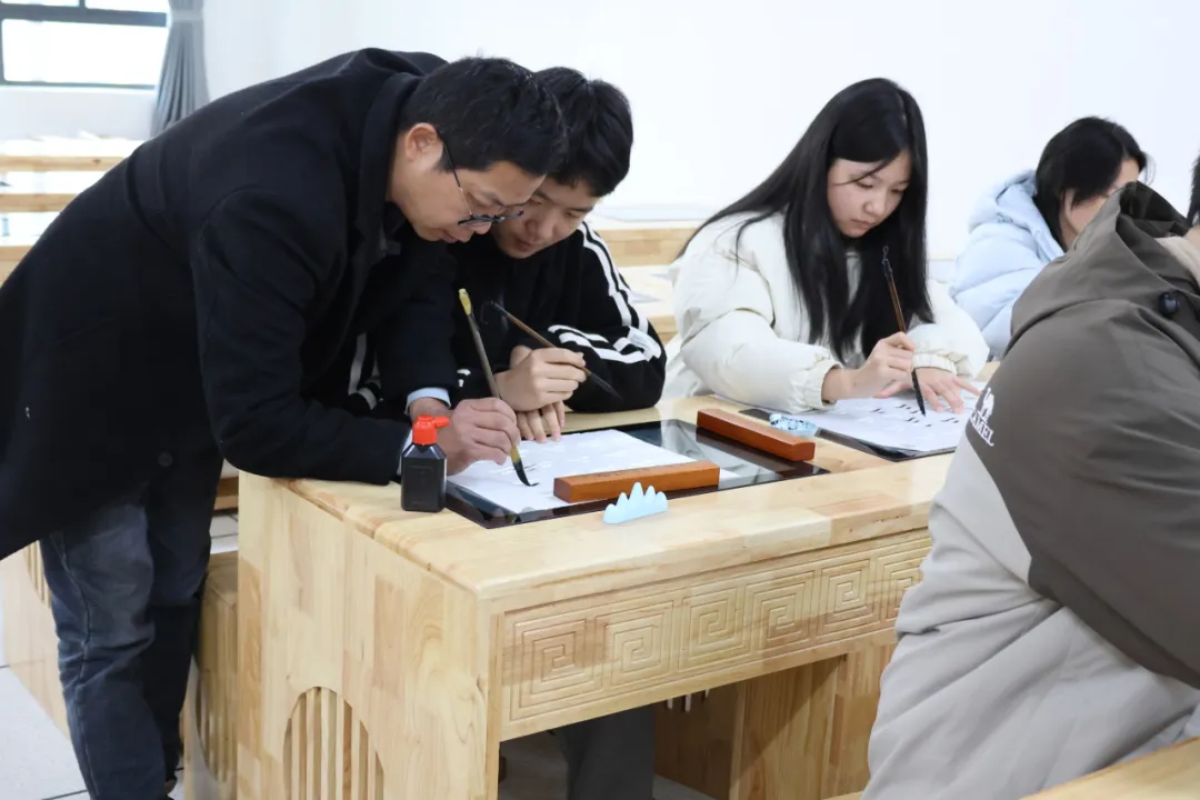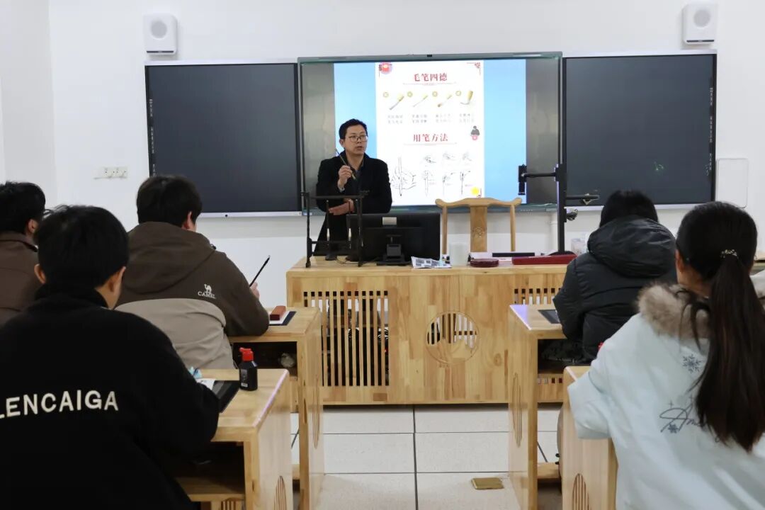 老师从握笔姿势教起,点画结构、章法布局,细细讲解,亲手示范。