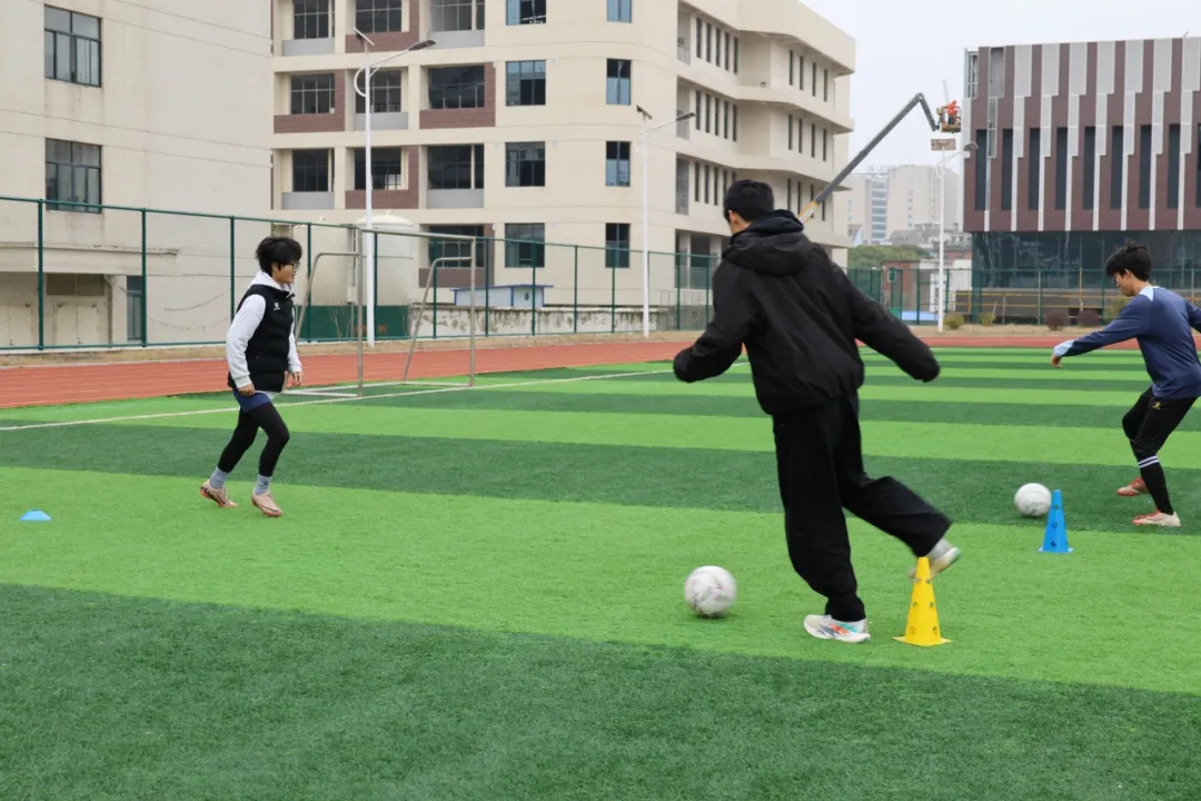 老师们根据每个人的特点分层指导,基础组从颠球开始,提升组则演练复杂的战术配合。