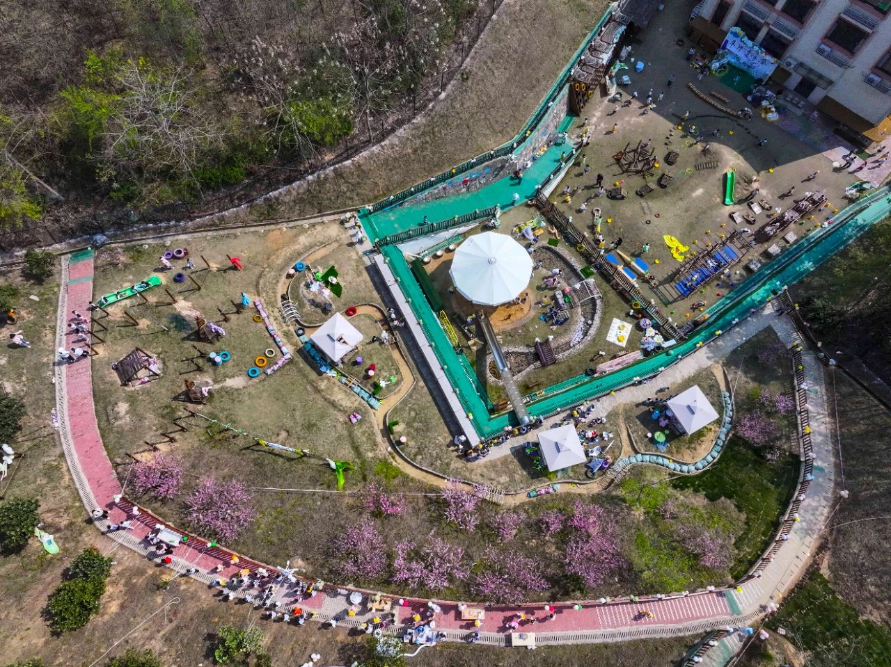 活动在童趣舞蹈《上春山》、情景剧《保护森林 熊熊有责》大合唱《在山的那边》中拉开序幕。活动以自然为课堂,从"小山坡"到"大世界",依托园区特色山坡资源,构建体能挑战场、创意艺术坊、科学探索营、社会体验园四大实践场景。用开放的环境激发孩子的创造力,用真实的挑战培养他们的韧性,用温暖的师幼互动构建安全感。让幼儿在山坡游戏中会生活、会劳动、会运动、会创造、会学习、会交往,做“六会”小行者。