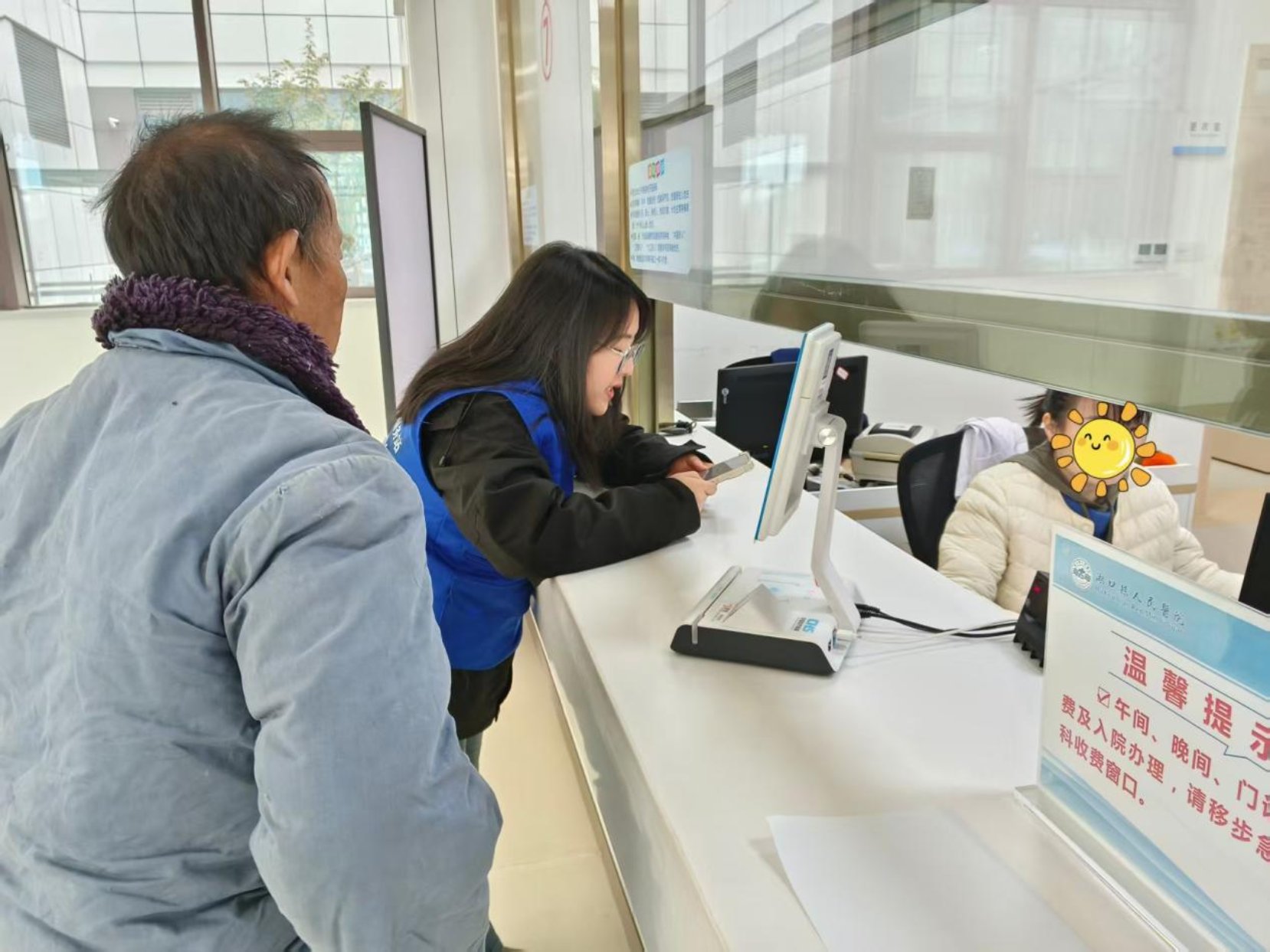 了解情况后,小吴告知赵叔叔需要住院做治疗并且要进行更全面的检查,询问赵叔叔是否有亲人可以来照顾,其表示兄弟姐妹都在外地务工,家中空无一人。随后小吴询问赵叔叔是否需要安排护工,叔叔表示现在自己一个人也能动,后面再看情况。为了让赵叔叔能够安心住院,小吴又马不停蹄地协助他办理住院手续,跑上跑下完善各项流程。