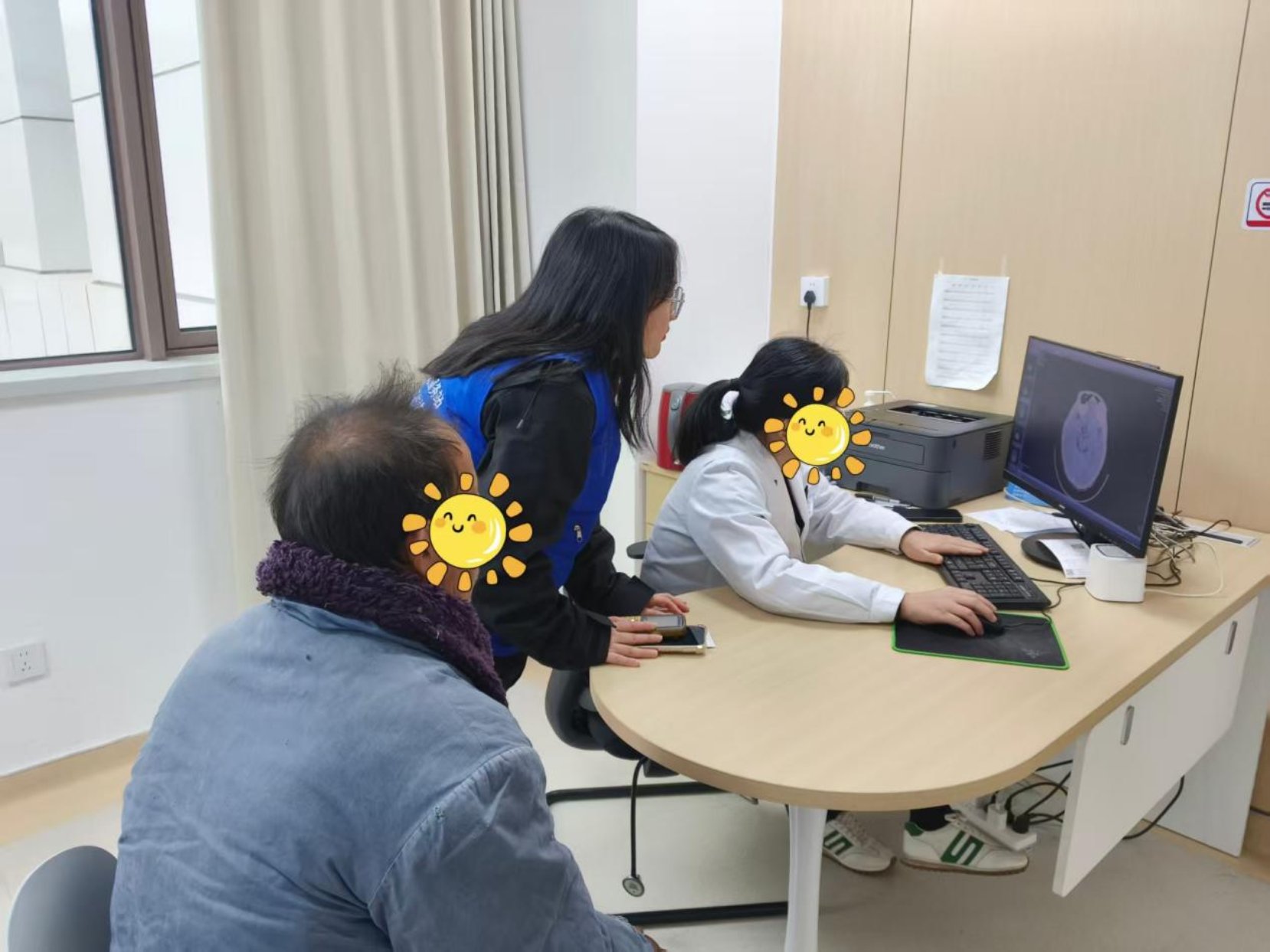到达医院后,小吴全程陪同赵叔叔,为其挂号、问诊,经过医生的初步诊断,赵叔叔因面部无法进行正常活动,担心有中风、脑梗等风险,需要住院接受进一步治疗。