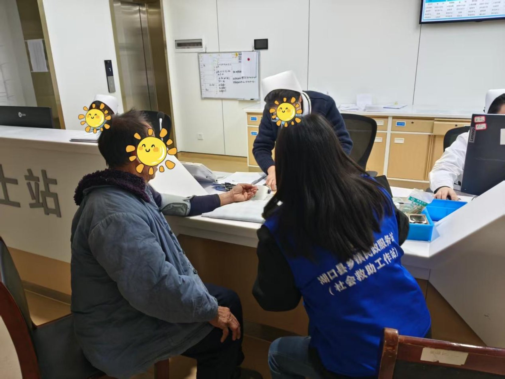 接到消息时,小吴因工作无法立即亲自赶往赵叔叔家中。她迅速冷静下来,在电话中细致交代赵叔叔带好身份证、社保卡及现金,乘坐客车前往湖口县汽车站,并承诺会议一结束就到车站接他就医。会议结束后,小吴立即赶往湖口县汽车站,顺利接到赵叔叔并搀扶着他前往湖口县人民医院。