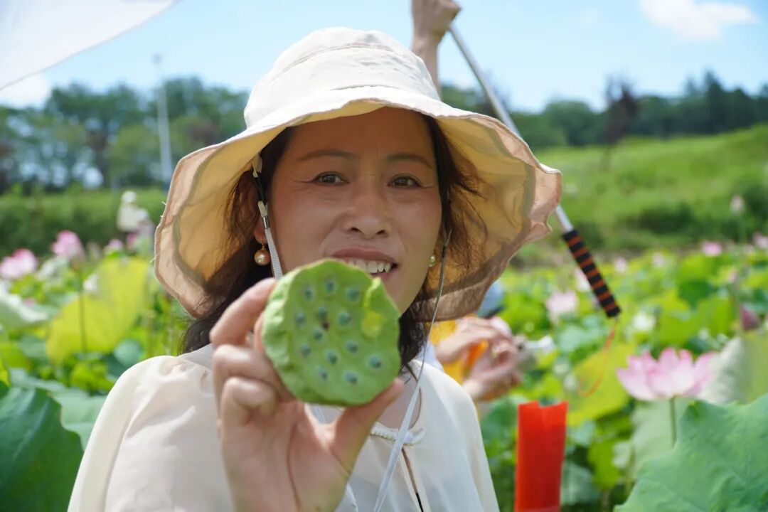 村委会负责人介绍:“我们种植的是莲子荷花,从开花到莲蓬成熟,每个环节都关系着村民的收入。”