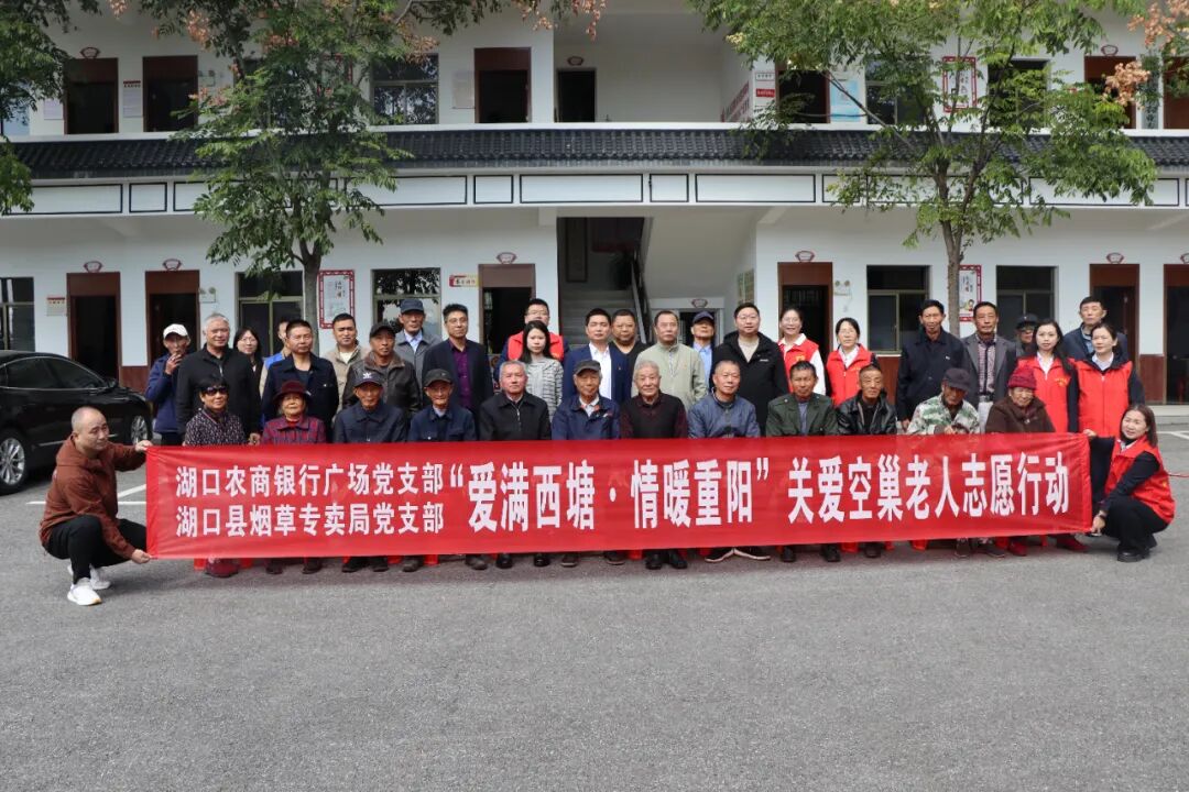 岁岁重阳,今又重阳。2025年10月23日,在重阳节来临之际,湖口县农商银行、县烟草局的志愿者们来到帮扶点流泗镇西塘村,开展“爱满西塘·情暖重阳”关爱空巢老人志愿活动,以贴心服务为村内空巢老人、孤寡老人送去节日的温暖与关怀,用实际行动传承“尊老、敬老、爱老、助老”的传统美德。
