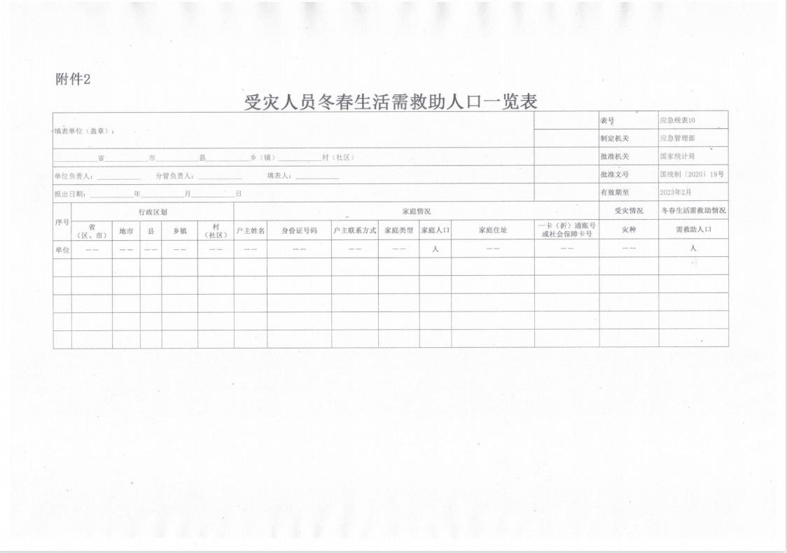 2、受灾人员冬春生活需救助人口一览表