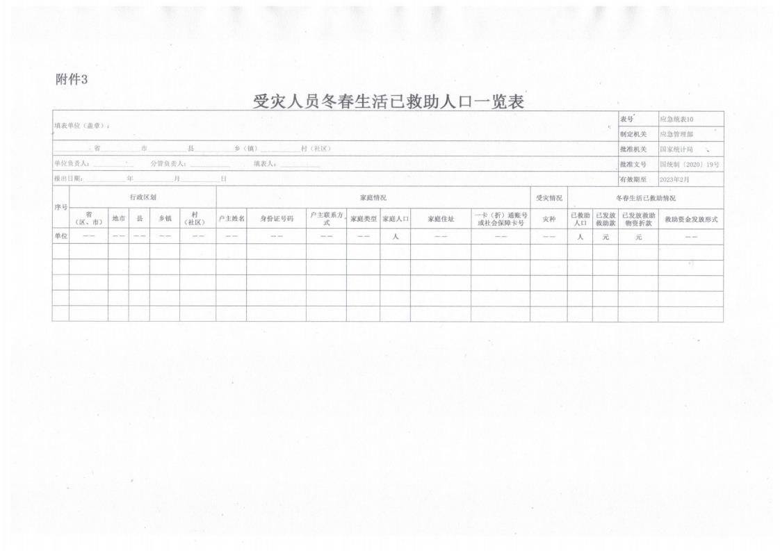3、受灾人员冬春生活己救助人口一览表