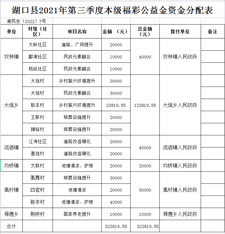 附:《湖口县2021年度县本级三季度福利彩票公益金分配表》