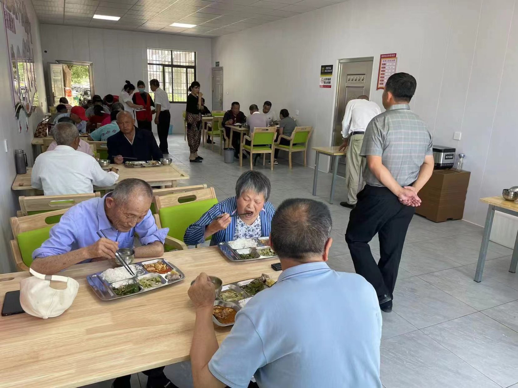 一是紧盯助餐用餐难题。聚焦助餐用餐这一老年人居家养老服务最大难点问题,为130个农村行政村(社区)、10个城市社区居家养老服务中心配套建设“幸福食堂”,配齐厨房、餐厅、适老化桌椅、消毒柜等设施设备,根据老年人膳食习惯做到每餐三菜一汤,目前全县“幸福食堂”覆盖行政村(社区)比例93.33%,日均用餐人数约846人。二是满足老人多样需求。紧盯城区老旧小区养老服务设施保障难题,采取“中心厨房集中配送+社区老年食堂”服务模式,前期投入约96万元支持双钟镇新建城区“幸福食堂”配餐中心,为城区14个社区“幸福食堂”统一配餐配送。在保障“幸福食堂”每天有肉有蛋、热饭热菜的基础上,不断满足多样化服务需求,广泛开展助安、助医、助娱服务,打造15分钟养老服务圈。三是拓展关爱服务内容。组织基层党员、志愿者、社会组织开展“邻里互助”,为全县1307名特殊困难老年人进行每月探视巡访,提供送餐助餐等上门服务。建成运营流泗镇金山村等5个“一老一小幸福院”,探索“以老带小、以小伴老”互助照料创新模式,形成了生活上关爱老人、精神上慰藉老人、权益上维护老人的良好氛围。