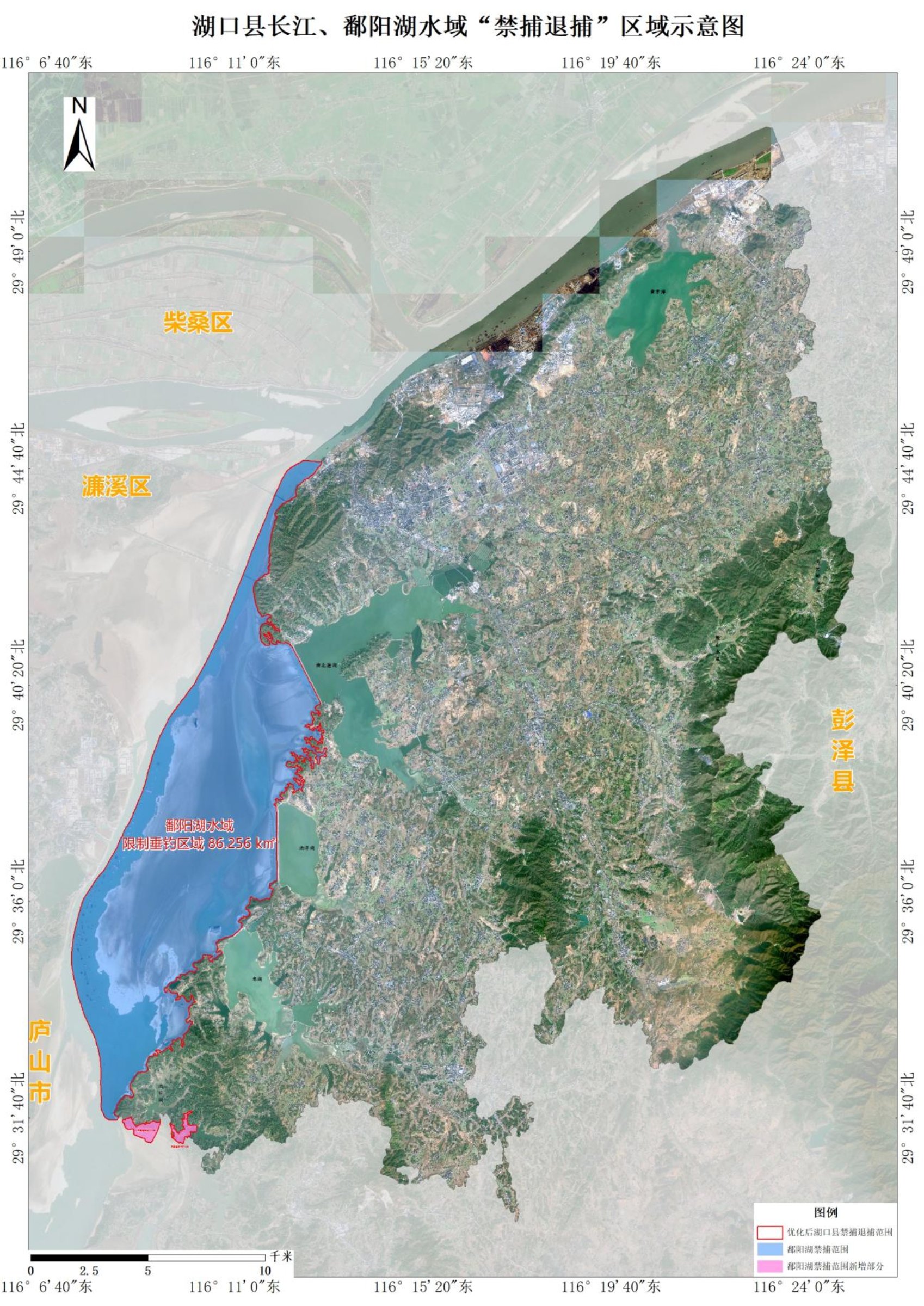 优化调整后的鄱阳湖湖口县水域禁捕范围为86.26平方公里,比2021年增加0.77平方公里。新增禁捕水域主要涉及舜德乡屏峰村令公寺水域、高桥村徐万涧水域。