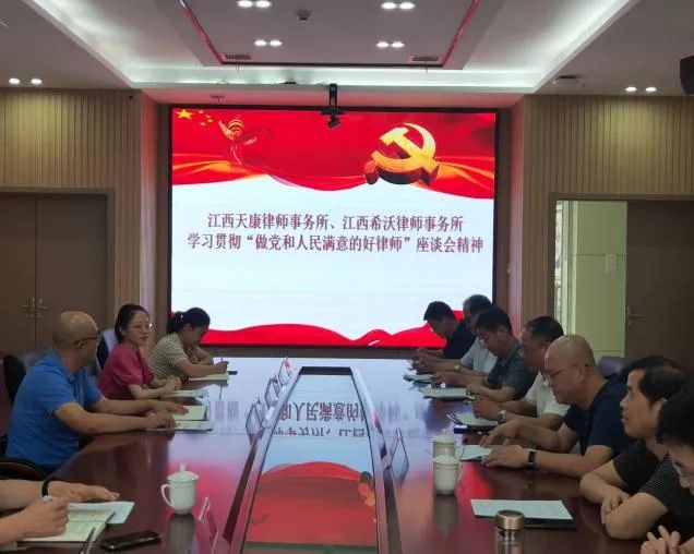 在会议过程中,全体与会律师对市局归纳座谈会精神认真进行了学习探讨。江西天康律师事务所主任叶宏明、江西希沃律师事务所主任万俊峰就精神的内涵分别发表了各自的感想,要求每位律师会后认真撰写学习心得,并共同倡议全县广大律师认真学习贯彻“五点希望”,争做“五个表率”:一要坚定正确政治方向,争做积极践行“两拥护”从业基本要求的表率;二要弘扬爱国主义精神,争做投身奋斗强国复兴的表率;三要践行法治为民宗旨,争做维护人民群众合法权益的表率;四要提升专业服务能力,争做推动社会经济高质量发展的表率;五要依法诚信规范执业,争做守护行业清风正气的表率。
