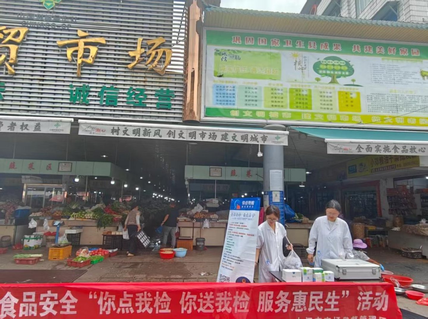 为构建食品安全共建共治格局,湖口县市场监督管理局于8月13日联合县公安局在县农贸市场开展“你点我检 你送我检 服务惠民生”活动。