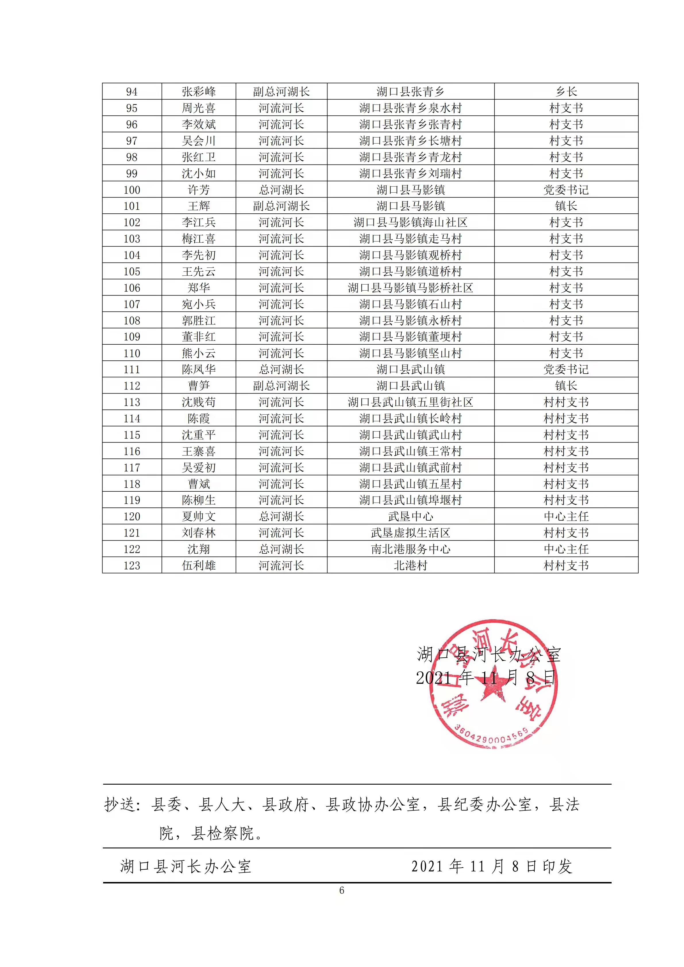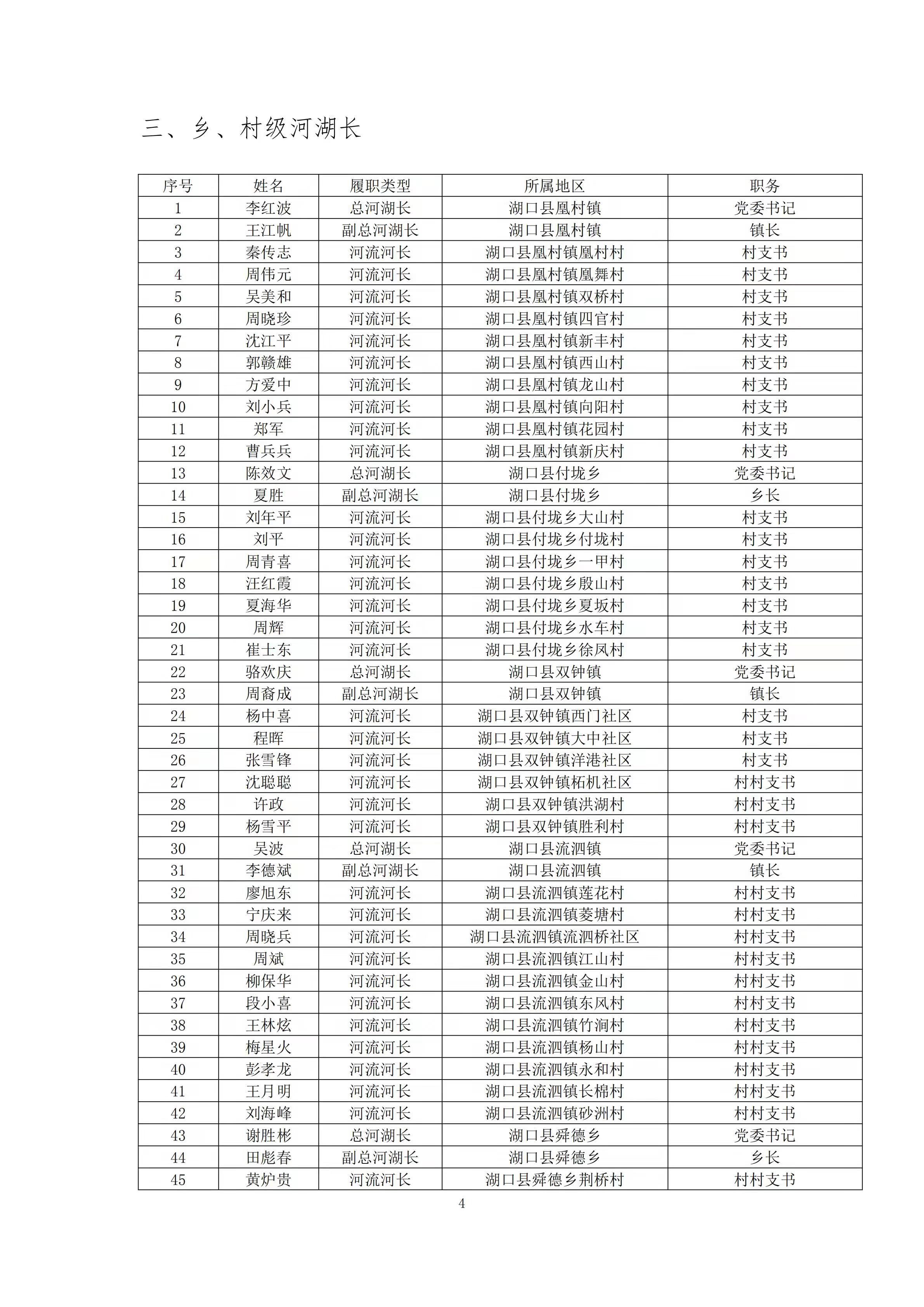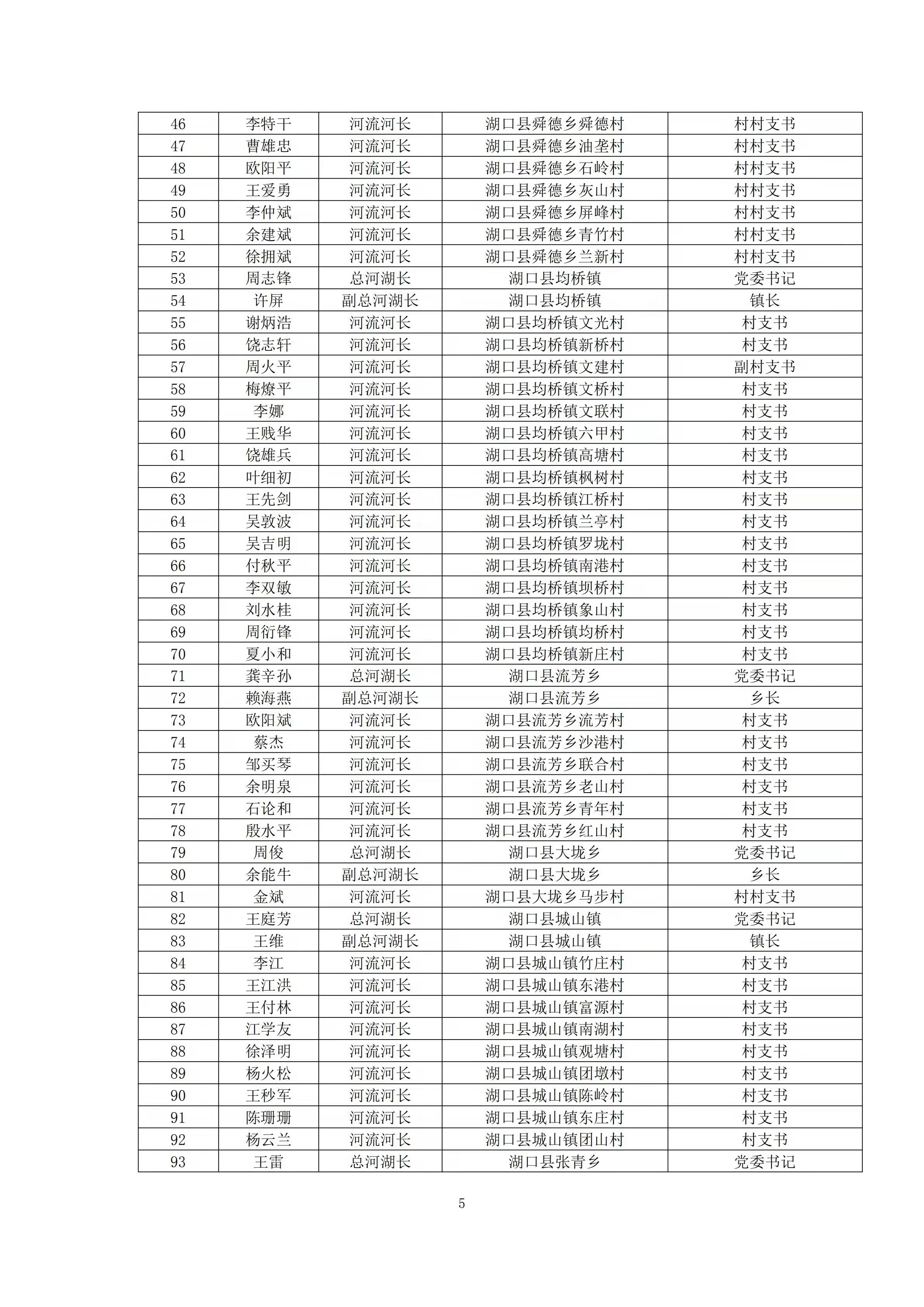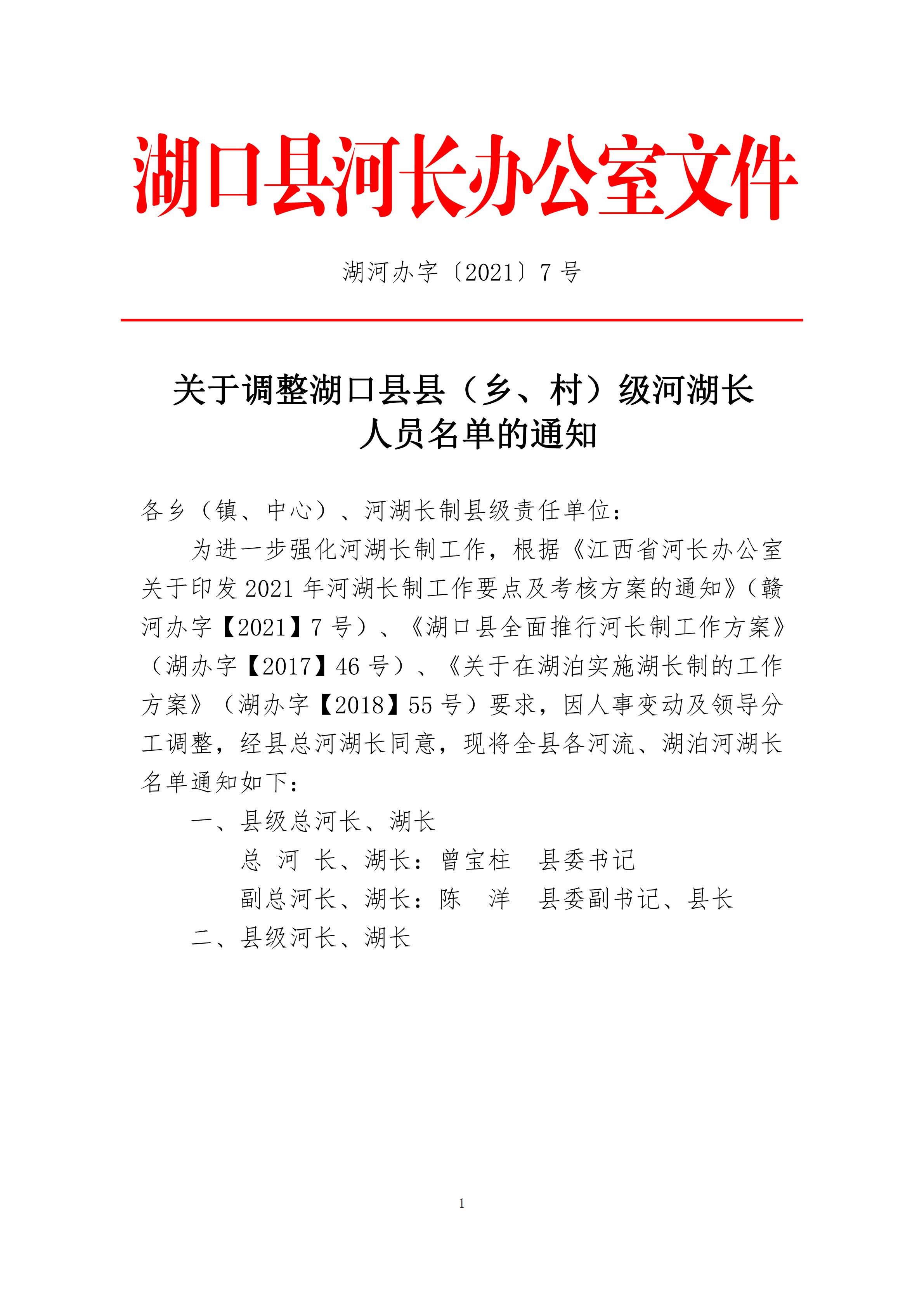 关于调整湖口县县(乡、村)级河湖长人员名单的通知