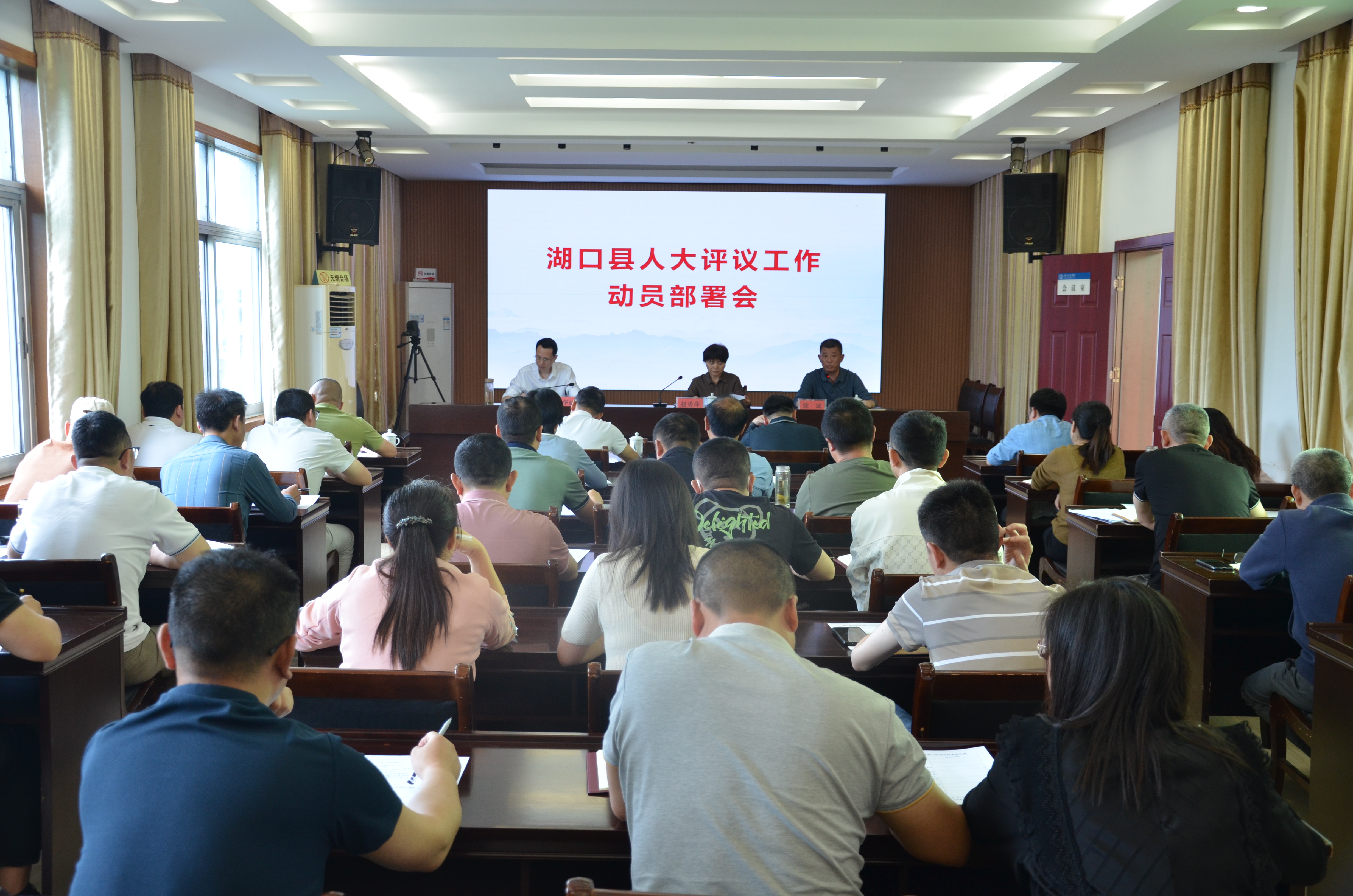 5月31日上午,湖口县水利局召开迎接县人大常委会工作评议动员部署会。县人大常委会副主任、第一评议工作专班小组组长赵勇萍出席会议并讲话。第一评议工作专班小组成员、县水利局领导班子成员、下属各单位负责人、机关各股室负责人参加了会议。