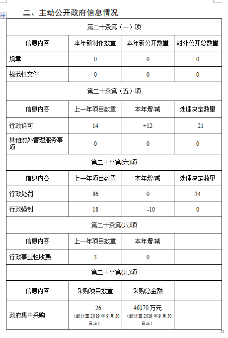 根据《条例》要求,我局对主动公开的政府信息进行了梳理,2019年度共公开信息113条,在湖口县电子政务办公室的指导下,根据第三方评估问题明细,我局对照清单,将未进行公开的信息全部公开到位。